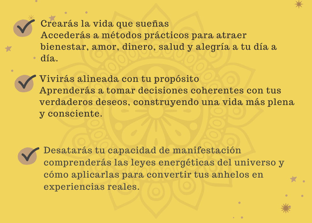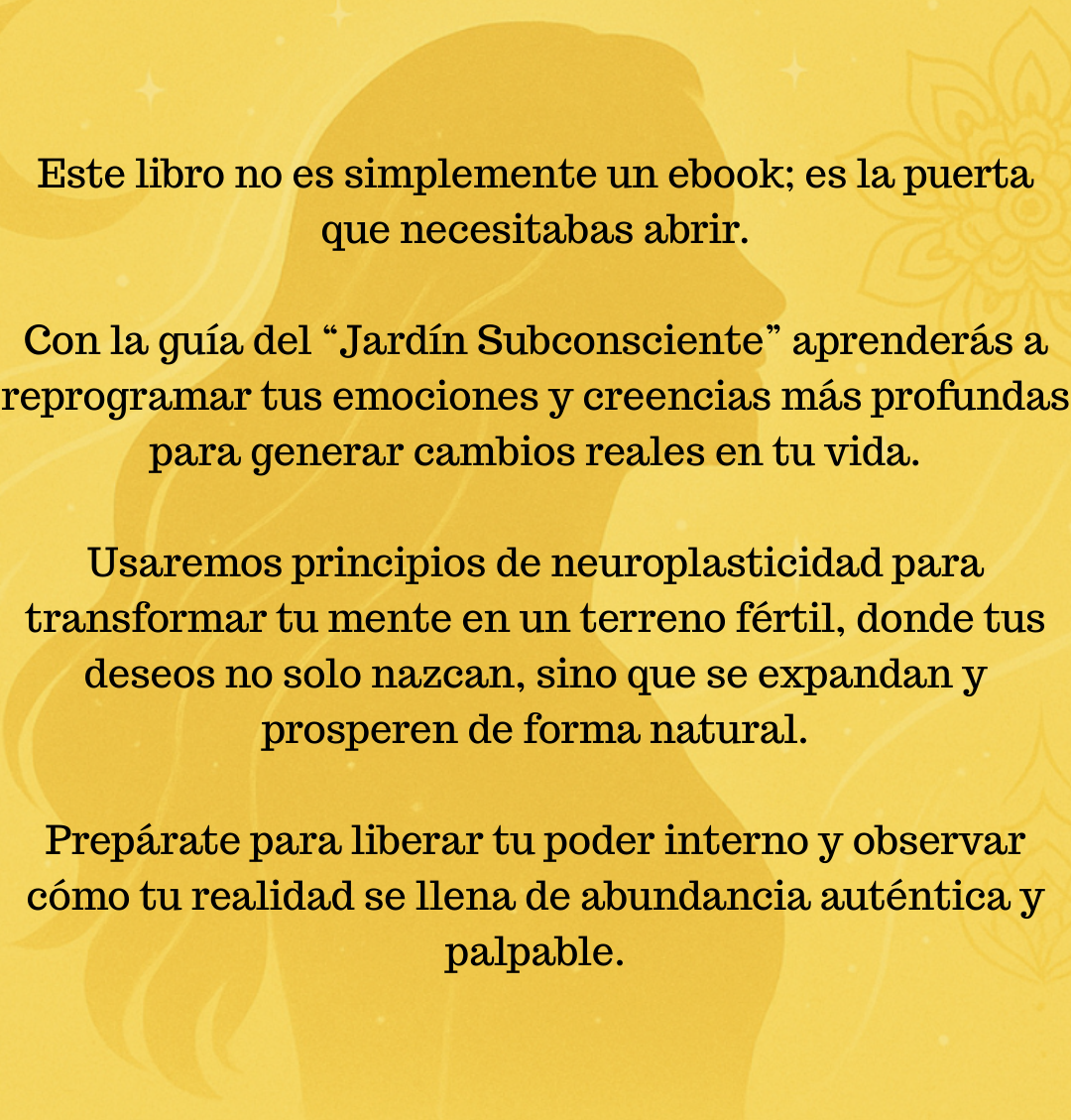 Aprenderás a reprogramar tus emociones y creencias para manifestar la vida que deseas desde tu subconsciente.